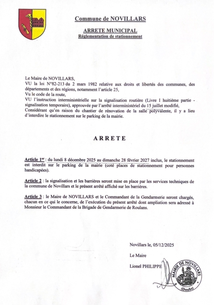 BARRIERE DE SECURISATION- CHANTIER INTERDIT A PARTIR DU SAMEDI 6 DECEMBRE 2025 AU 28 FEVRIER 2027: RENOVATION DE LA SALLE POLYVALENTE