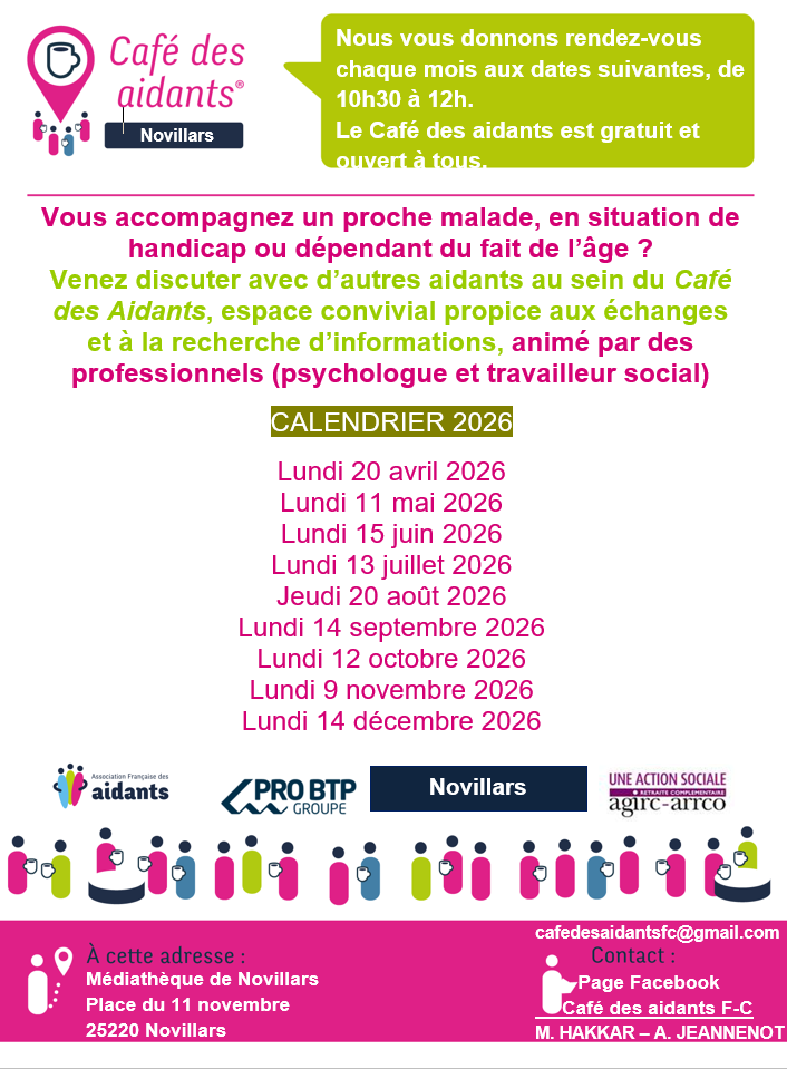 CAFE DES AIDANTS : LIEU MEDIATHEQUE DE NOVILLARS LUNDI DE 10H30 A 12H30