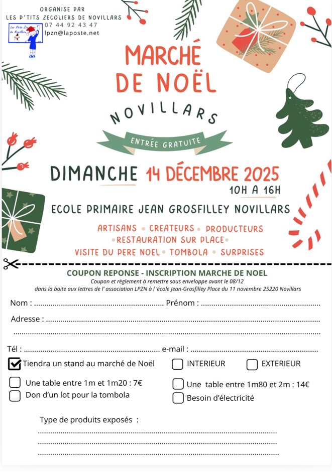 MARCHE DE NOEL DIMANCHE 14 DECEMBRE 10H A 16H A L’ECOLE PRIMAIRE JEAN GROSFILLEY