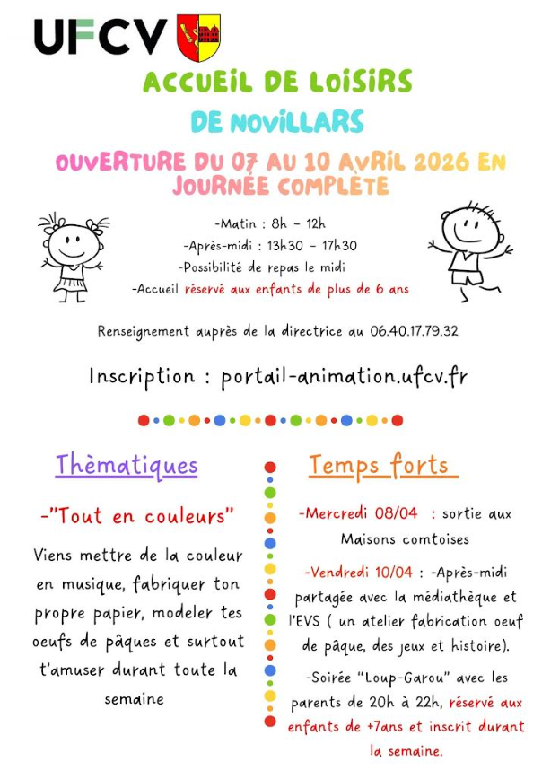 UFCV: ACCUEIL DE LOISIRS – OUVERTURE DU 07 AU 10 AVRIL 2026 EN JOURNEE COMPLETE – INSCRIPTION: portail-animation.ufcv.fr