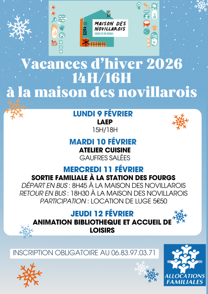 VACANCES D’HIVER 2026 14H A 16H A LA MAISON DES NOVILLAROIS: INSCRIPTION OBLIGATOIRE 06.83.97.03.71